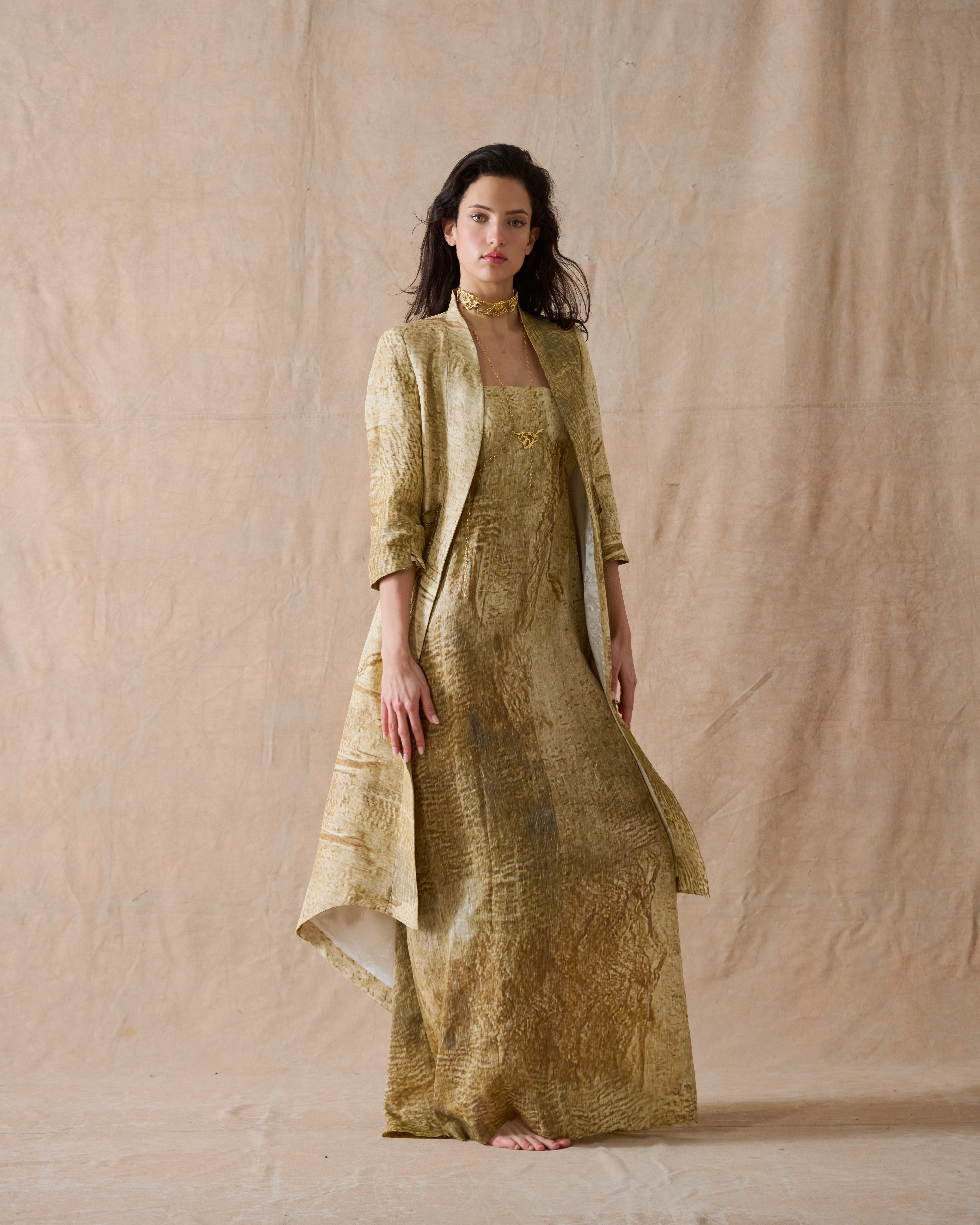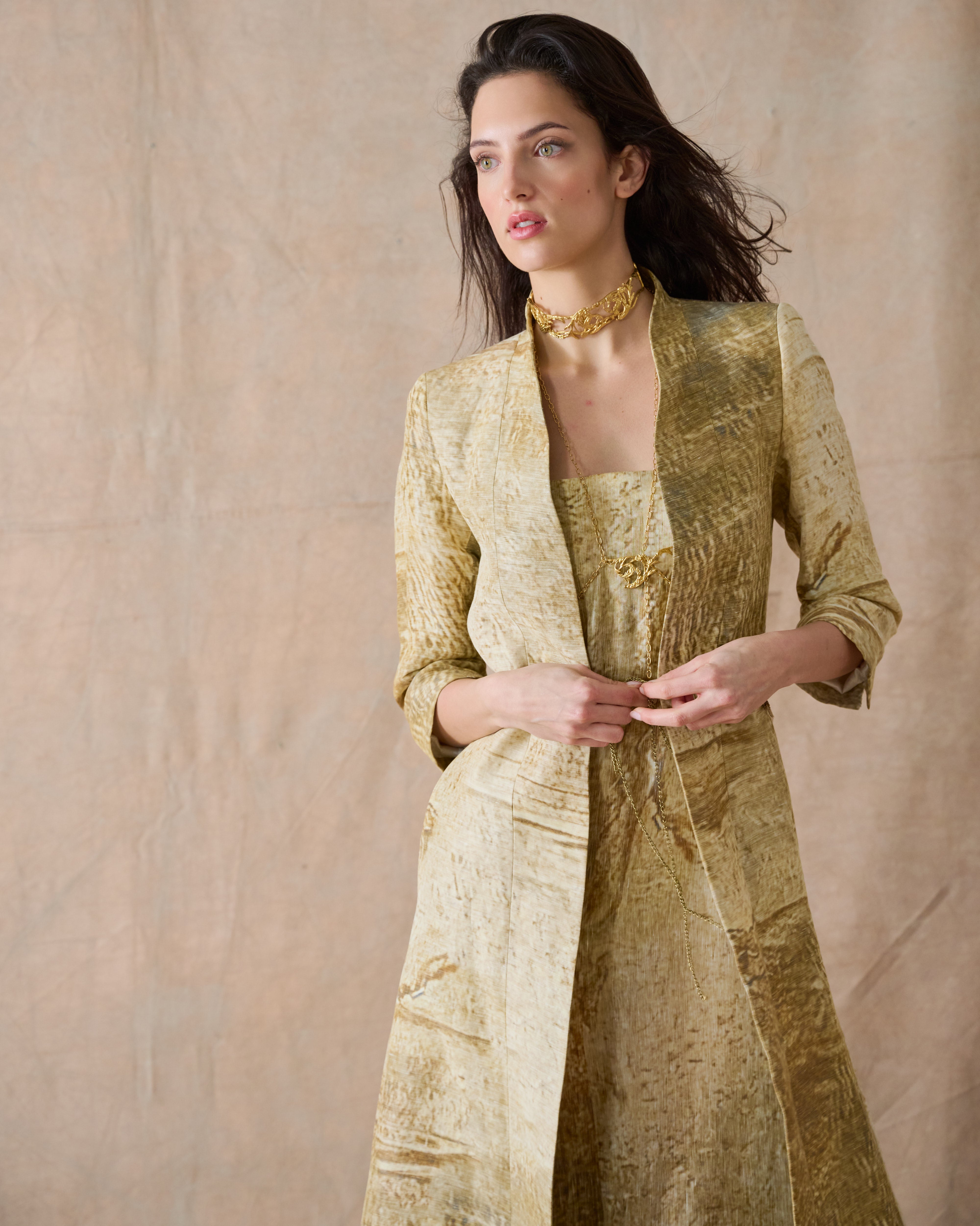 Ginebra Birdie Coat in Rustic Silk - Desert