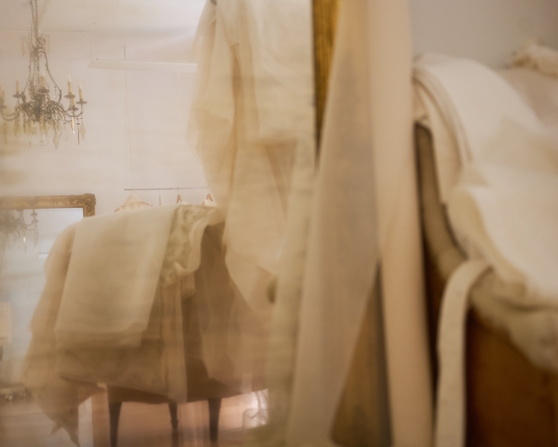 Prêt-à-Couture bridal gowns. The T.ba Brides team blends research on patterns, fabrics, and artisanal techniques into a creation as unique as the women wearing them.