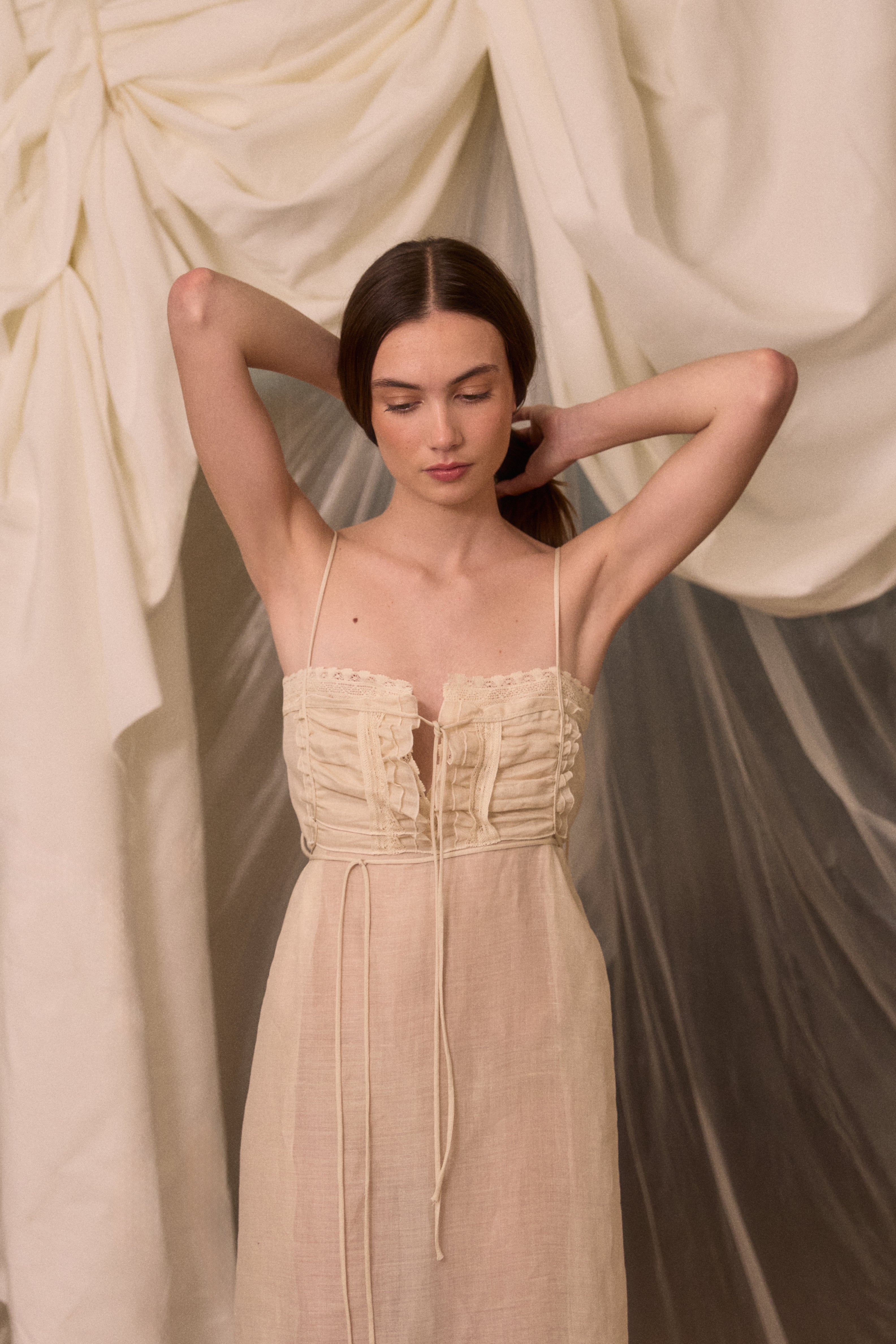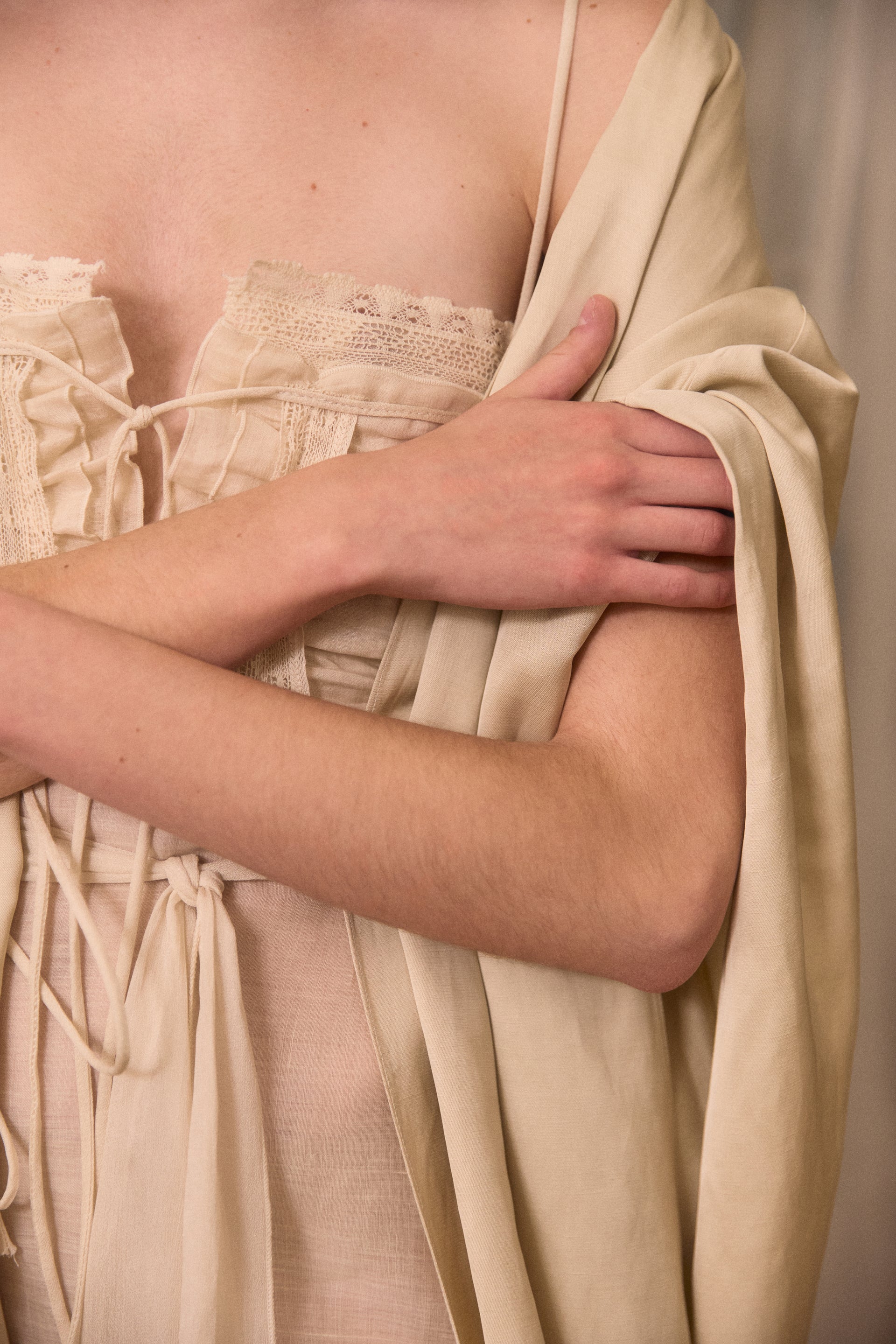 Inspired by dawn, where fabric touches the skin like light itself. A very special evolving collection, free from the rush of fashion calendars.