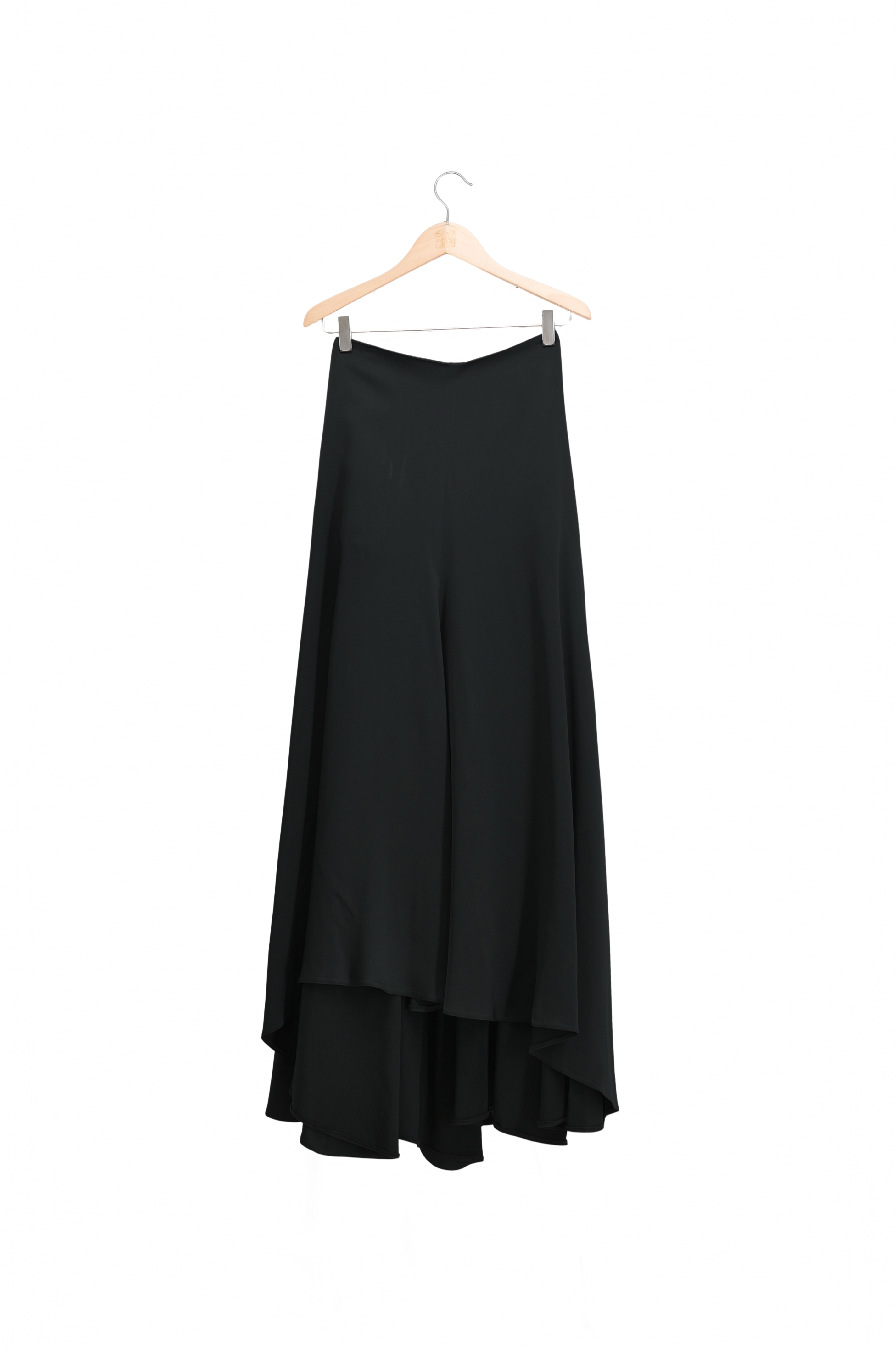 The Bolero Skirt is crafted from fluid crepe in classic black. It features a fitted waist and a flared asymmetric hem. Designed with a clean back zip closure, this skirt offers a refined balance of structure and ease, ideal for both formal and casual styling.