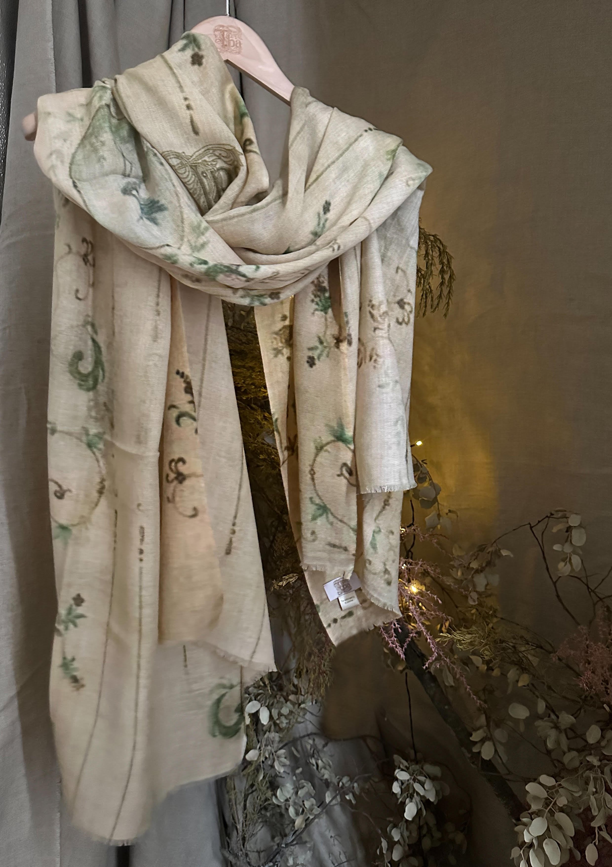 Wrapped in the softness of the finest wool, this embroidered shawl captures the warmth of autumn landscapes and the poetry of handcraftsmanship. With floral motifs that evoke ancient gardens, it becomes an accessory that elevates any outfit with timeless elegance. Perfect draped over classic coats or flowing dresses, it is a whisper of history worn on the shoulders.