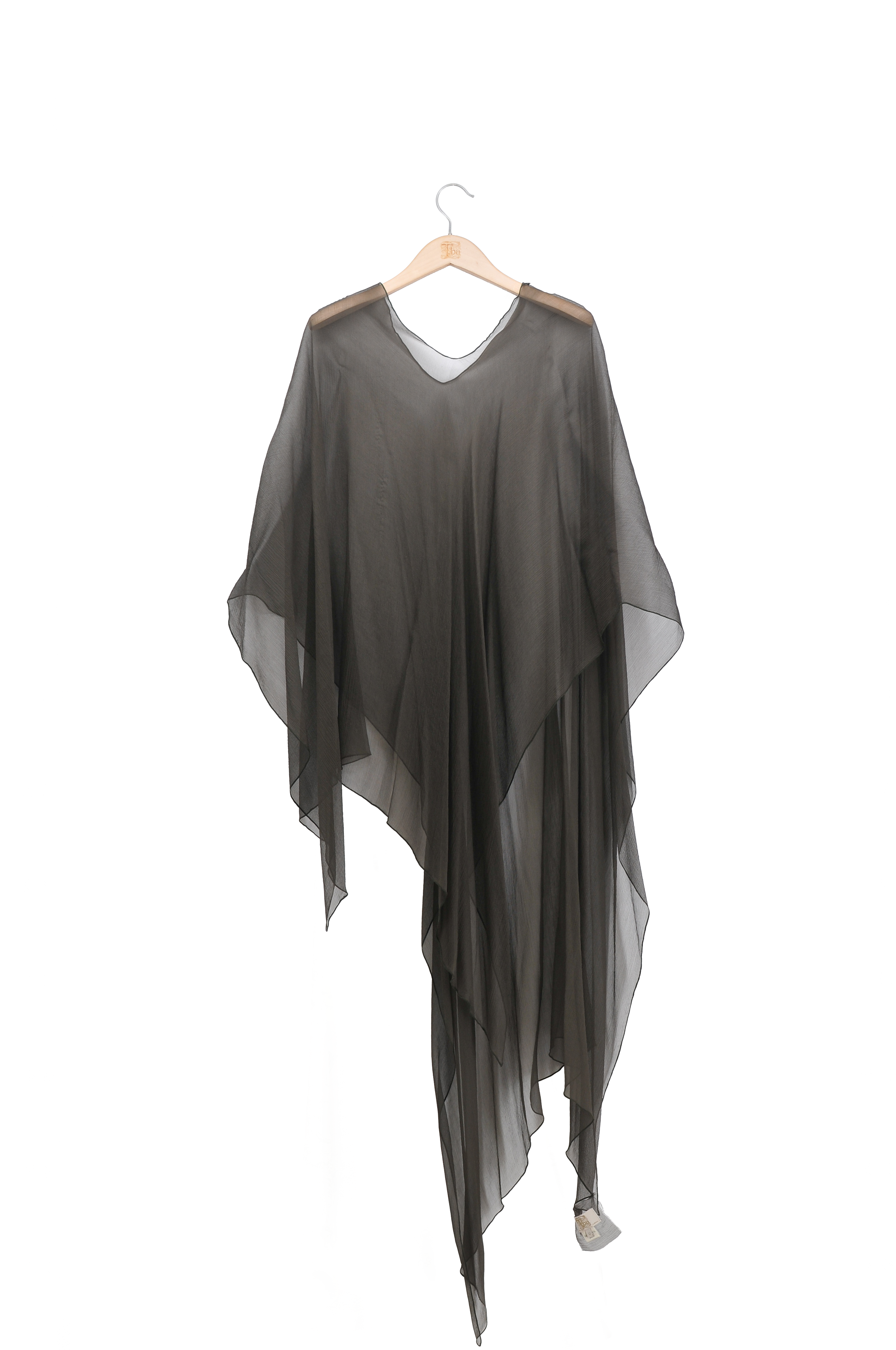 Chal ligero de gasa con caída fluida y dobladillo asimétrico. Acabado transparente para superponerlo suavemente sobre vestidos o prendas de sastrería.