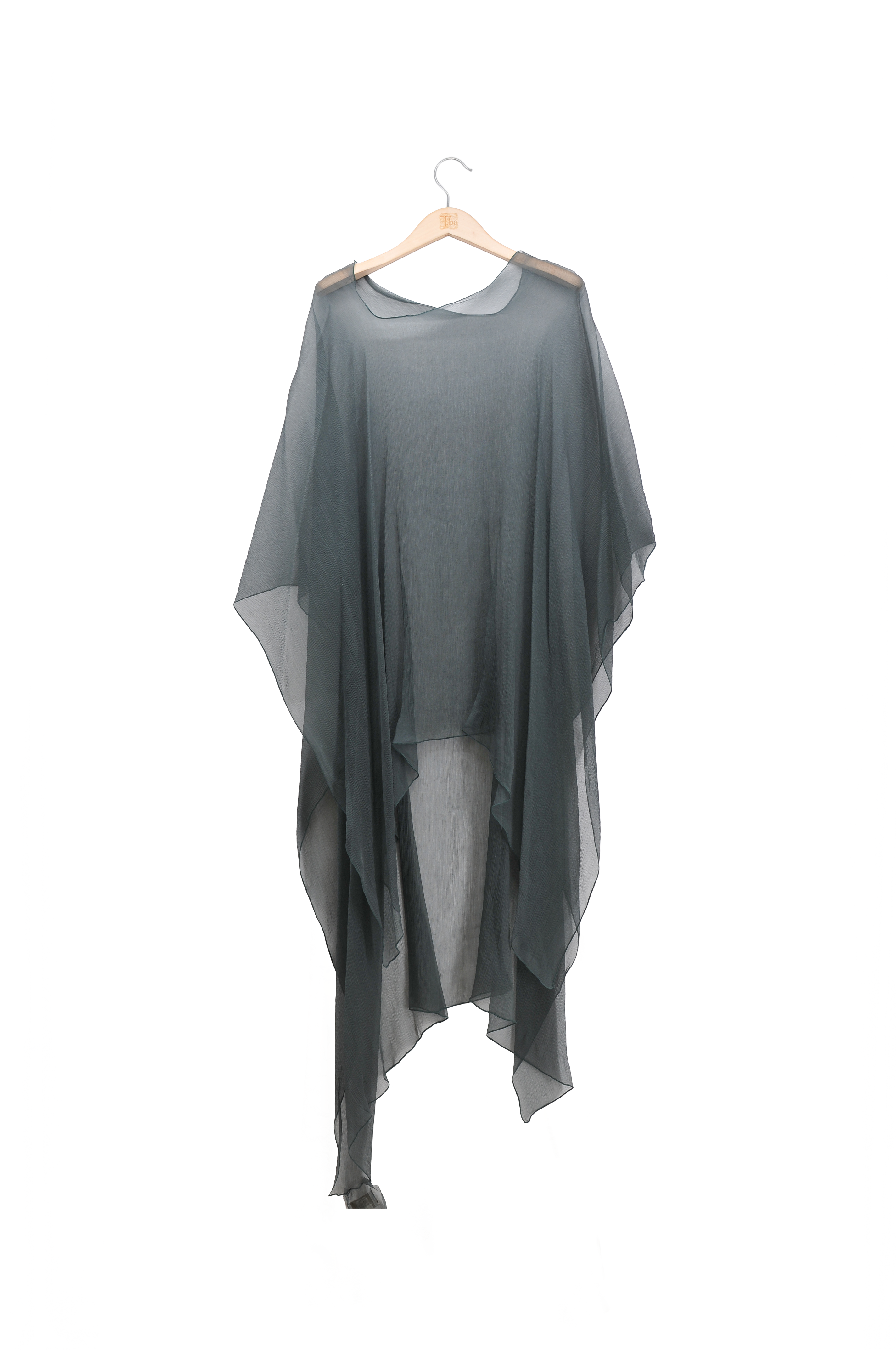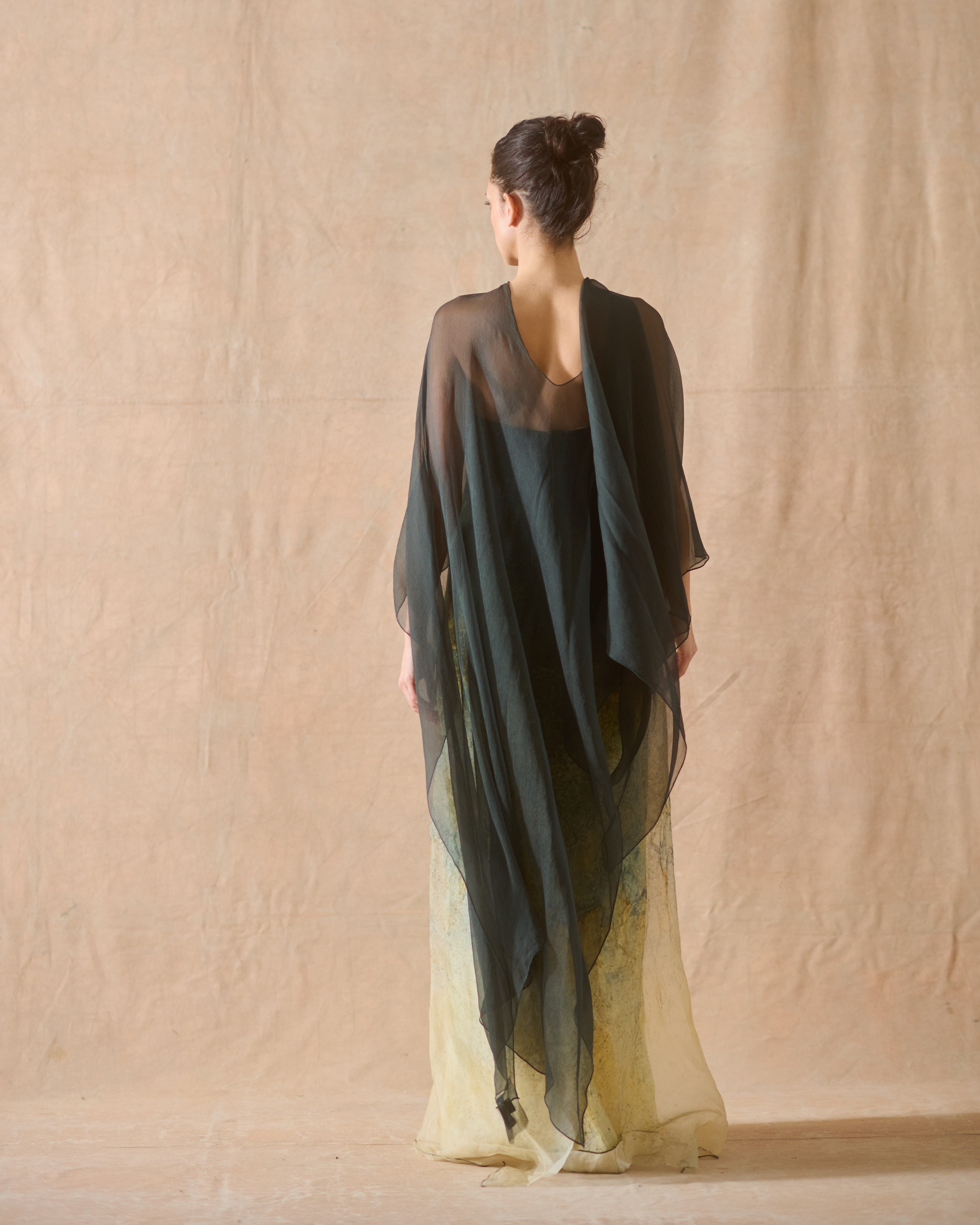 Chal ligero de gasa con caída fluida y dobladillo asimétrico. Acabado transparente para superponerlo suavemente sobre vestidos o prendas de sastrería.